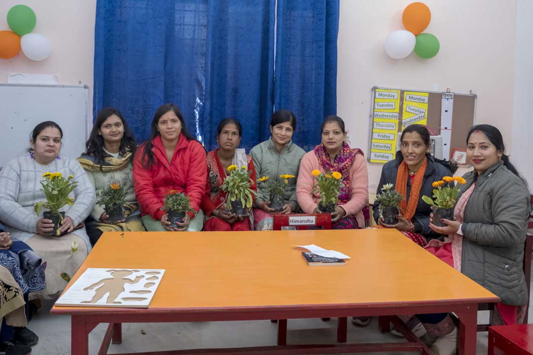 Sharmi Guha, art therapist, and aunt of our trainee Sayan Choudhary conducted an art therapy workshop for a compact group of eight parents from our