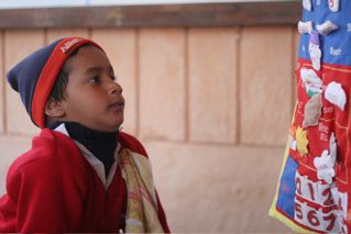It’s always a treat to be there. Today, Choti Manju was in charge and as I watched her I marveled again at what a talented teacher she is. Using sign language, song and her own animated facial expressions, she led the children through the morning prayer, greeted each one by name and then talked about what day it was, what month and whether it was cloudy or cold.