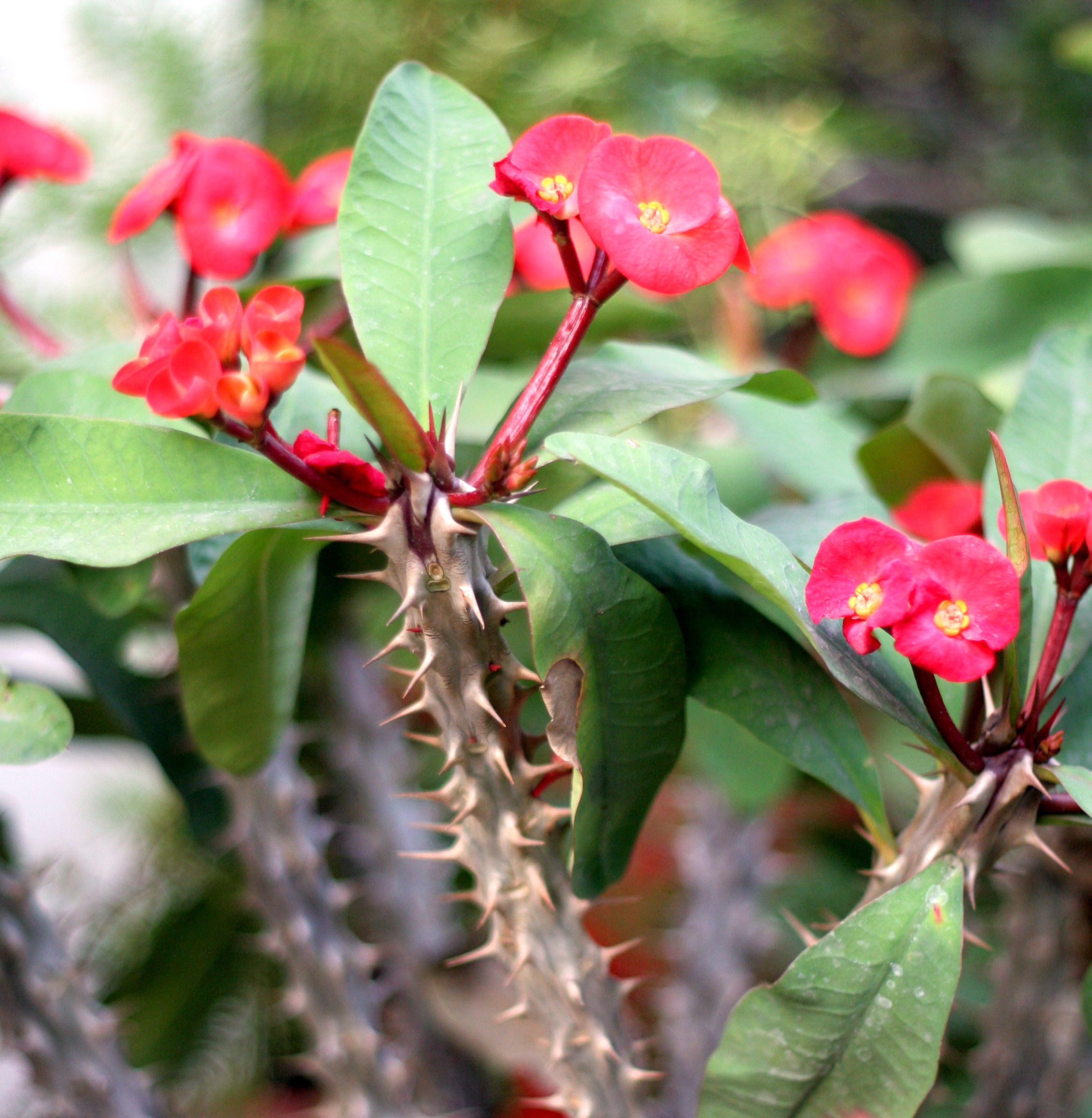 I went to visit my friend Vina’s garden because she is away in Dubai and everything is coming into bloom and I didn’t want her flowers to be lonely and unappreciated. She has an amazing array of things happening there – a camellia tree which is dazzling and heavy with beautiful, rose-like flowers, pansies just about to open, cinneraria all winking and improbable in full shade, roses of deepest yellow and red, and then this cactus here which stopped me in my tracks. What the heck is going on? Delicate, exquisite little blossoms perched bravely at the top of the most harrowing range of thorns – how does this happen? How does such beauty emerge from such fierce and formidable stems, stems guaranteed to be intensely painful (it almost hurts to look at them)? The flowers are fragile and sweet and inseparable from the suffering. You can’t get one without the other. Vina’s garden is full of wonders, full of mystery and delight, but nothing there moved me like these bright courageous blossoms, full of hope and glory.