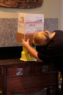 I was as busy as she was (with more mundane tasks like carrying chairs and sweeping verandahs) while the cake was being lovingly and painstakingly designed, so I may have missed an essential step or two, but I think I got the main stuff down.