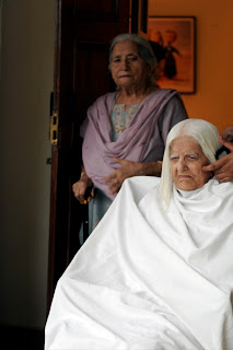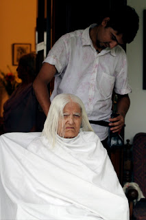 But she IS 93. Her joints aren’t as supple as they once were and some of her daily routines have now become difficult and even a burden. Her hair, for one. As modern as she is, where her hair is concerned, Mummy has always been traditional. After her ceremonial mundan at the age of two, when all her hair was shaved off, she has never had a hair cut. Never. Her beautiful white locks fell below her waist – thick and glossy and constantly in need of washing, drying, combing and braiding.