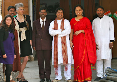 I know there is a lot to look at in this picture, but I’d like to draw your attention to the shoes. You can’t see Sumita’s or Neha’s, but you can safely assume they are in the same neighborhood as mine. You can’t see Rajesh’s either (he’s the guy between me and Neha), but you can safely assume his are not. His are almost certain to be like Suresh’s (brown suit), Rizwan’s (white kurta/red scarf) and Ramesh’s (white kurta). That is: sturdy, sensible, comfortable.